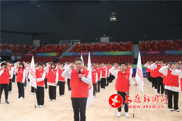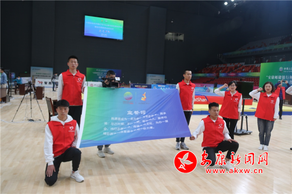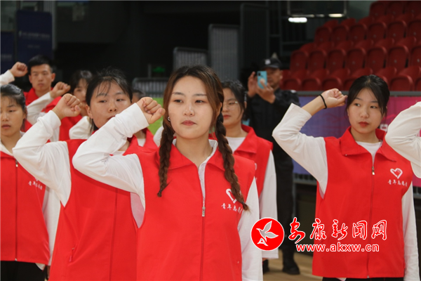 隨后市委文明辦思想道德建設科科長、項目競委會志愿者和觀眾服務處副處長劉獻兵帶領全場志愿者進行宣誓。大家鏗鏘有力的宣讀著誓詞:“我愿意成為一名光榮的青年志愿者。我承諾:盡己所能,不計報酬,幫助他人,服務社會。踐行志愿精神,傳播先進文化,為辦一屆精彩圓滿的體育盛會貢獻一份力量。”