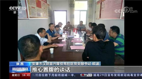 安康市漢陰縣興隆佳苑社區(qū)黨支部書記歐波:“當(dāng)時(shí)遇到這個(gè)困難我們沒有退縮,我們?cè)谒伎,還是要把三個(gè)村的支部的思想先統(tǒng)一起來。所以,我們分別到西嶺村和興隆村,和他們的支部班子來一個(gè)推心置腹的談話。”