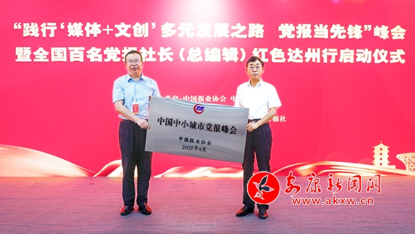 啟動儀式上,中國報業(yè)協(xié)會為達(dá)州日報社授予“中國中小城市黨報峰會”匾牌。