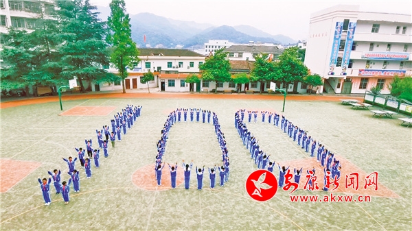 (6月25日,石泉縣城關(guān)鎮(zhèn)中心小學(xué)“童心向黨輝煌百年”主題教育活動中,學(xué)生組成“100”、心形等字樣造型方陣,手揮國旗,齊聲高呼:祝中國共產(chǎn)黨生日快樂!杜懷 許啟軍 攝)