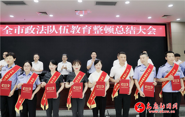 會(huì)上,市政法隊(duì)伍教育整頓領(lǐng)導(dǎo)小組授予50名同志“全市人民群眾滿意的政法干警”稱號(hào)。