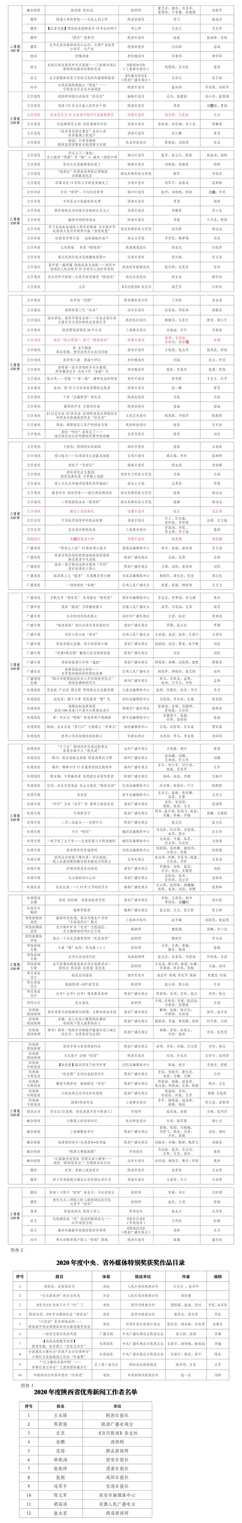 據(jù)了解,2020年度陜西新聞獎獲獎作品281件,其中一等獎作品60件、二等獎作品101件、三等獎作品120件;10件作品獲2020年度陜西新聞獎“中央、省外媒體特別獎”;12名新聞工作者獲得陜西省優(yōu)秀新聞工作者稱號。WLT安康新聞網(wǎng)