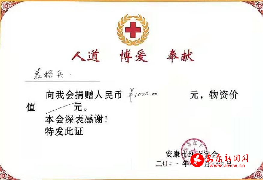 8月23日晚,安康市紅十字會工作人員接到了一通從河南打來的電話,對方稱自己叫袁格兵,身處河南鄭州,了解到安康近期遭遇了洪澇災(zāi)害,想為安康救災(zāi)工作捐款1000元。工作人員在感謝對方的善意后詳細介紹了紅十字會的捐贈程序,并互相留了聯(lián)系方式。