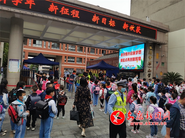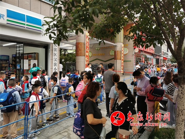 9月1日,新學(xué)期如期開學(xué),安康中心城區(qū)的漢濱小學(xué)、安康陽光學(xué)校、安康市第一小學(xué)的門口秩序井然,小學(xué)生們戴著口罩,精神抖擻排著隊(duì)等候進(jìn)入校園。公安、城管在現(xiàn)場(chǎng)加強(qiáng)疏導(dǎo),學(xué)校周邊交通秩序正常,祝小小少年,健康成長(zhǎng),揚(yáng)帆遠(yuǎn)航。(鄭時(shí)根 攝)BDD安康新聞網(wǎng)