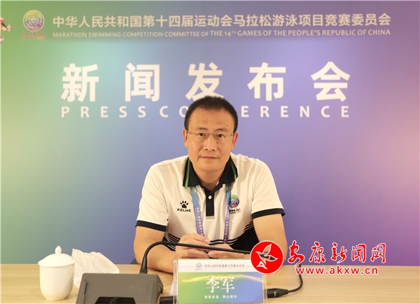 本網(wǎng)訊(記者 魏濤 陸青波)9月11日下午,第十四屆全國運(yùn)動(dòng)會(huì)馬拉松游泳項(xiàng)目賽前新聞發(fā)布會(huì)在瀛湖酒店新聞發(fā)布廳召開。十四運(yùn)會(huì)馬拉松游泳項(xiàng)目競委會(huì)副主任、國家體育總局游泳運(yùn)動(dòng)管理中心副書記李軍,十四運(yùn)會(huì)馬拉松游泳項(xiàng)目競委會(huì)副主任、安康市政府副秘書長劉福全出席發(fā)布會(huì)并介紹相關(guān)情況。