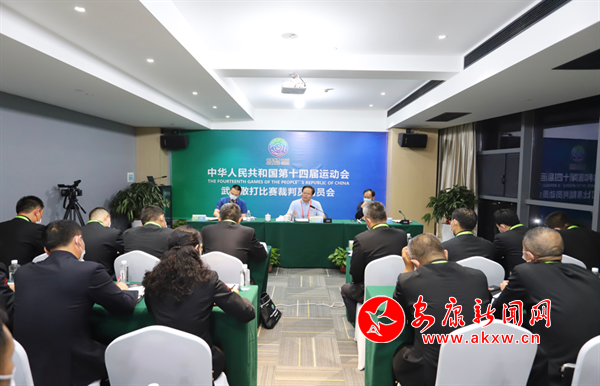 會(huì)議傳達(dá)了《體育總局辦公廳關(guān)于印發(fā)<第十四屆全國(guó)運(yùn)動(dòng)會(huì)打分計(jì)點(diǎn)項(xiàng)目裁判員選派管理監(jiān)督規(guī)定>的通知》,學(xué)習(xí)了國(guó)家體育總局領(lǐng)導(dǎo)在相關(guān)會(huì)議上的重要講話精神,宣讀了《第十四屆全國(guó)運(yùn)動(dòng)會(huì)武術(shù)散打決賽裁判員賽風(fēng)賽紀(jì)責(zé)任書》,全體裁判員現(xiàn)場(chǎng)簽署、遞交了賽風(fēng)賽紀(jì)責(zé)任書。