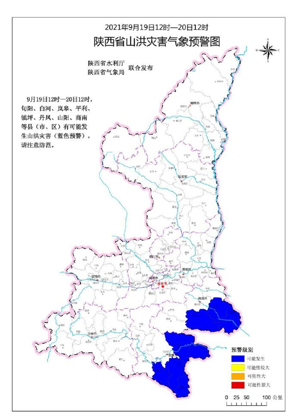 本網(wǎng)訊 陜西省水利廳與陜西省氣象局聯(lián)合發(fā)布山洪災(zāi)害氣象預(yù)警:預(yù)計2021年9月19日12時至2021年9月20日12時,旬陽、白河、嵐皋、平利、鎮(zhèn)坪、丹鳳、山陽、商南等縣(市、區(qū))有可能發(fā)生山洪災(zāi)害(藍色預(yù)警)。請注意防范。Kkp安康新聞網(wǎng)