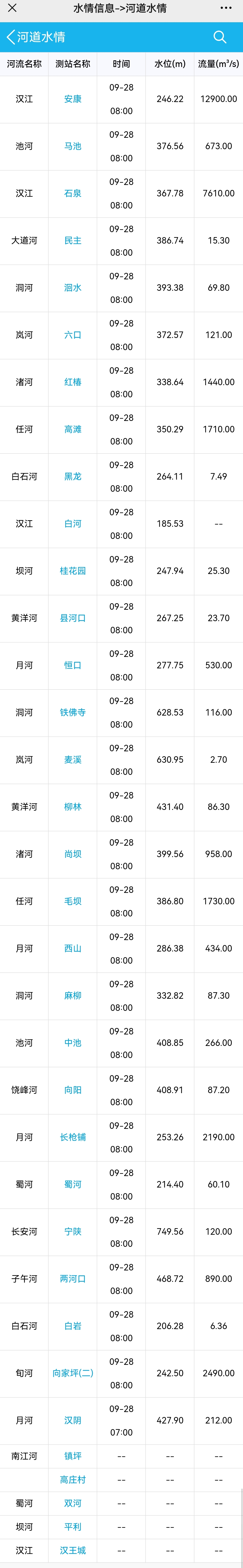 快報(bào) | 截至9月28日8時(shí) 漢江最新水位流量