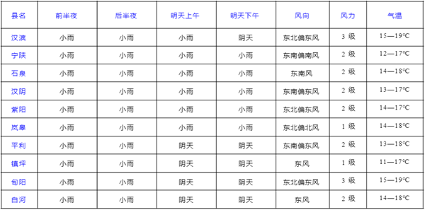預(yù)計(jì)今天晚上到明天白天小雨轉(zhuǎn)陰天;明晚到9日陰天間多云,西北部陰轉(zhuǎn)小雨;10日小雨轉(zhuǎn)陰天;11日陰天;12日多云轉(zhuǎn)晴;13日晴間多云;14日晴轉(zhuǎn)多云。3QZ安康新聞網(wǎng)