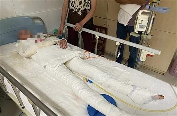 靈靈全身有91%的燒傷,大多都是重二度和輕三度燒傷,尤其是雙腿、后背和脖子最嚴(yán)重,目前已經(jīng)經(jīng)過三次手術(shù),其后可能還需要經(jīng)歷4到5次植皮手術(shù)和瘢痕治療。