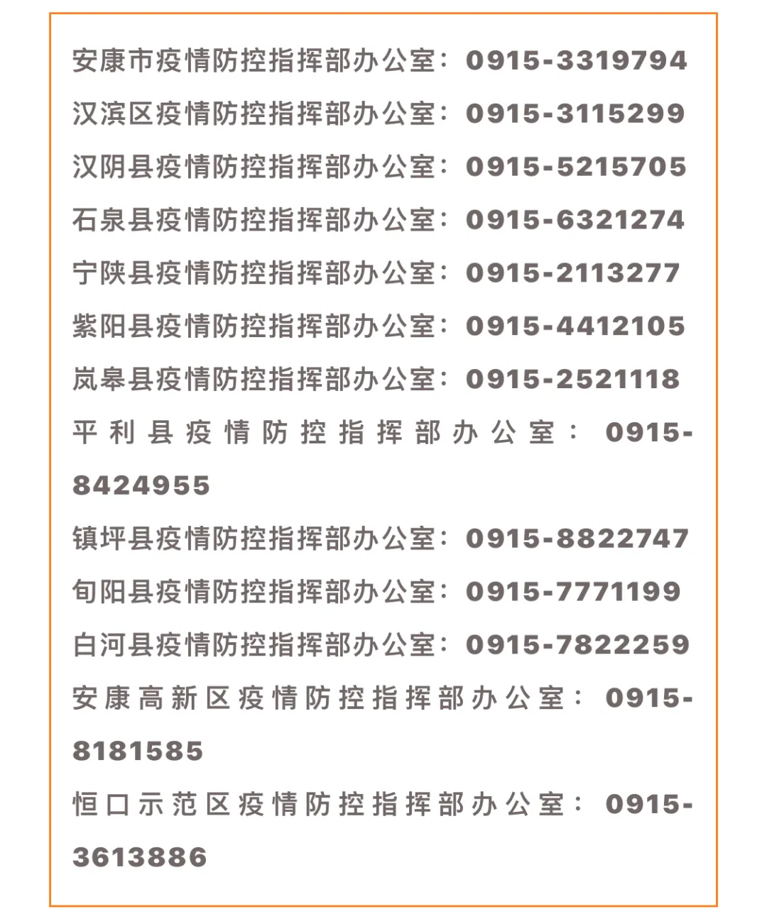安康各縣區(qū)疫情防控指揮部辦公室值班電話qdA安康新聞網(wǎng)