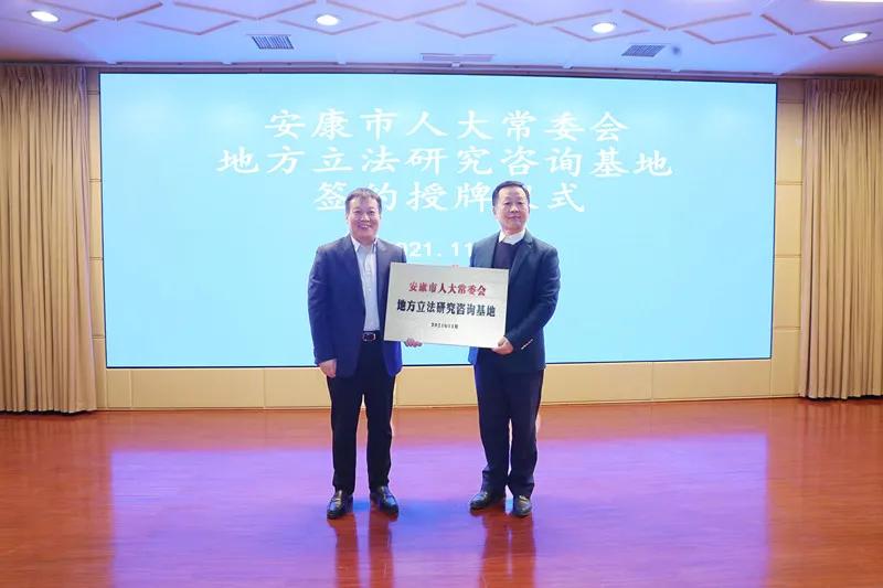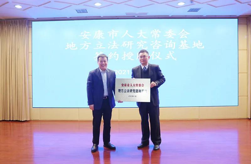 儀式上,市人大常委會法工委與西北政法行政法學(xué)院、安康學(xué)院馬克思主義學(xué)院簽訂了地方立法合作協(xié)議,市人大常委會主任鄒順生向這兩個學(xué)院頒發(fā)了“安康市地方立法研究咨詢基地”牌匾。