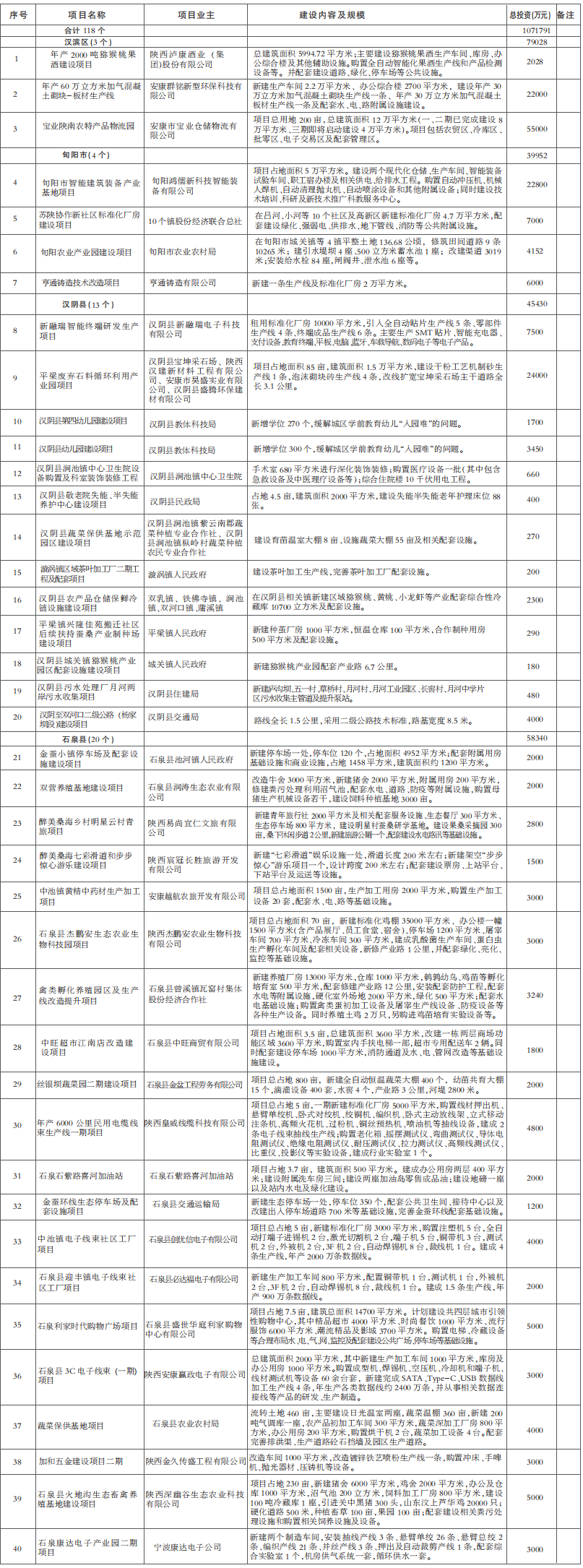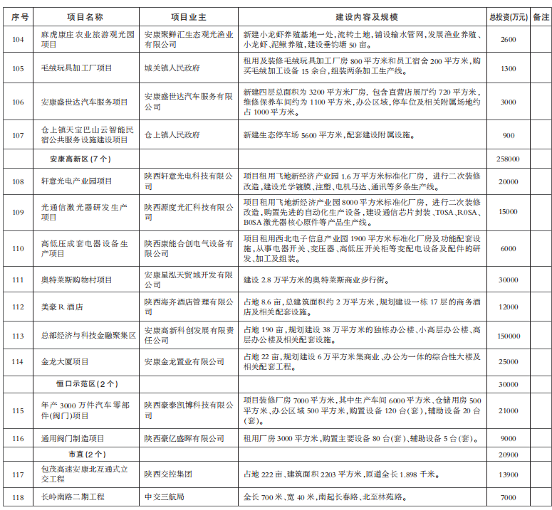 安康市 2021 年四季度以來(lái)投產(chǎn)投用