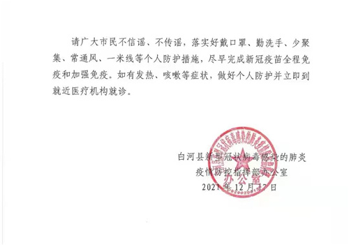 白河縣新冠肺炎疫情防控指揮部辦公室