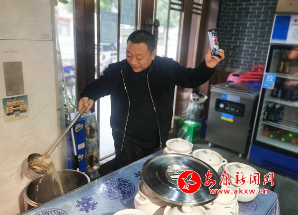 白天店內(nèi)忙碌的時候,“70后”的梁存杰會舉著手機,記錄下食客排隊購買自家鹵豬蹄的畫面。到了傍晚,當?shù)陜?nèi)的客流達到頂峰時,后廚里忙碌的場景又成了他的視頻素材。他會在閑暇之余將這些拍攝的素材進行簡單剪輯后發(fā)布在自己的短視頻賬號上和朋友圈里,他的目的很簡單:“就是想讓大家都知道天源飯莊,在短視頻上介紹新菜,包括客戶的評價,都是為了吸引更多的顧客,做生意嘛,就是圖一個生意興!”