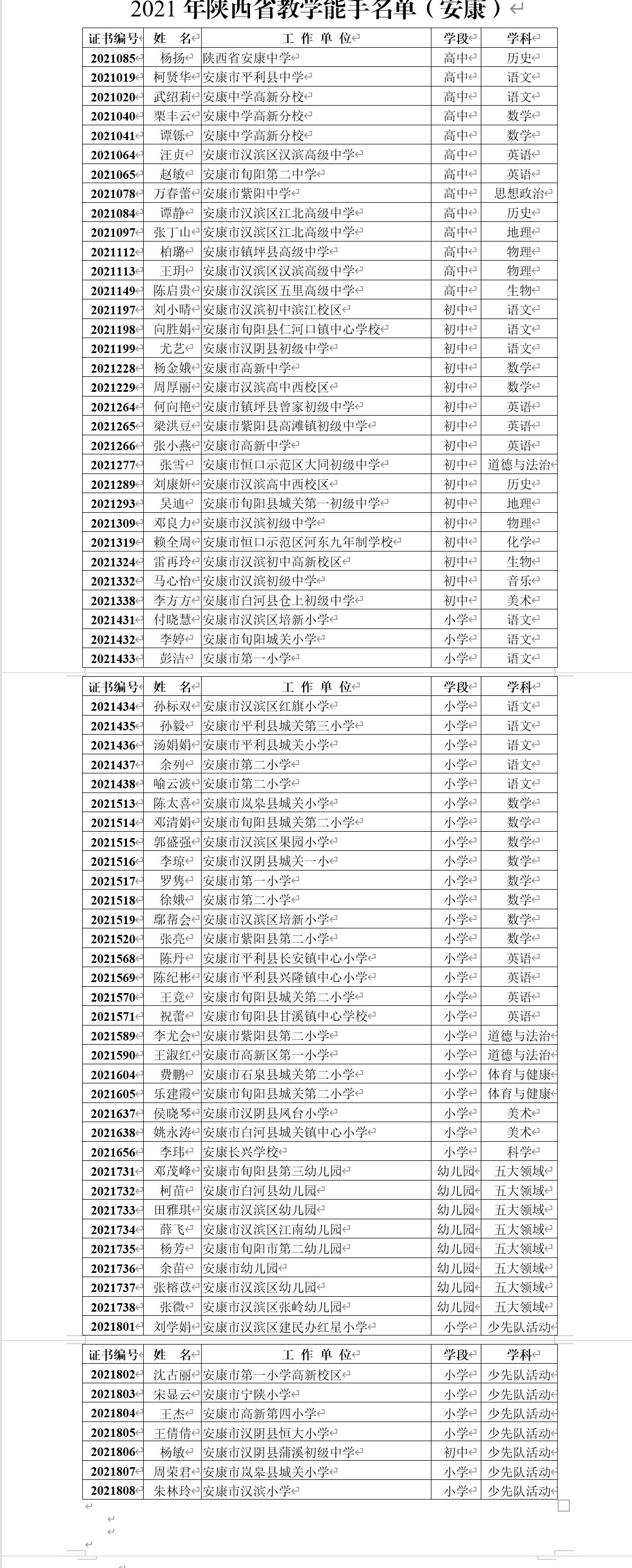 快訊 | 安康72名!2021年陜西省教學(xué)能手名單公布