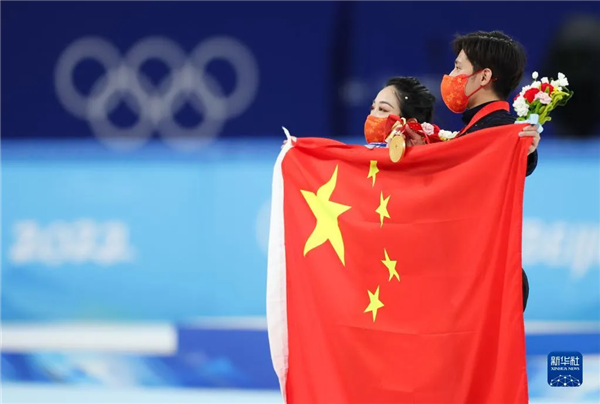 ▲2月19日晚,中國花樣滑冰選手隋文靜、韓聰獲得北京冬奧會雙人滑金牌。