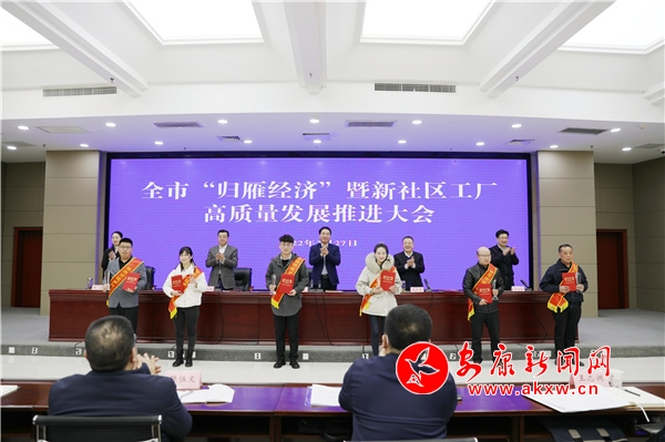 本網(wǎng)訊(記者 艾蓓 吳單)2月27日,我市召開“歸雁經(jīng)濟(jì)”暨新社區(qū)工廠高質(zhì)量發(fā)展推進(jìn)大會,表彰先進(jìn)、兌現(xiàn)獎勵、部署工作。市委書記趙俊民出席會議并講話。市長武文罡主持會議。市委常委、常務(wù)副市長高晶華就市委、市政府《關(guān)于加快發(fā)展“歸雁經(jīng)濟(jì)”的指導(dǎo)意見》作說明,副市長寇全安、楊淼分別宣讀有關(guān)文件和表彰通報。