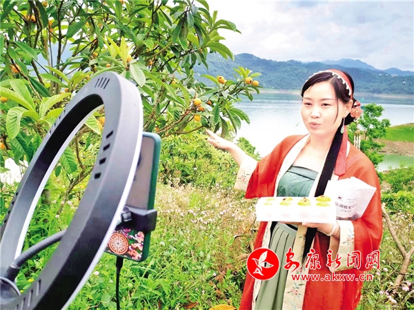 “朋友們,現(xiàn)在正是瀛湖枇杷成熟的季節(jié),這里的農(nóng)家小院、山坳水岸、田間地頭,隨處可見一樹樹金黃的枇杷,如同一棵棵金蛋蛋掛在枝頭,此起彼伏,正在演奏著季節(jié)樂章,美妙無比。”抖音達(dá)人“農(nóng)旅體驗(yàn)官”王擁邊走邊直播瀛湖枇杷成熟的盛景。
