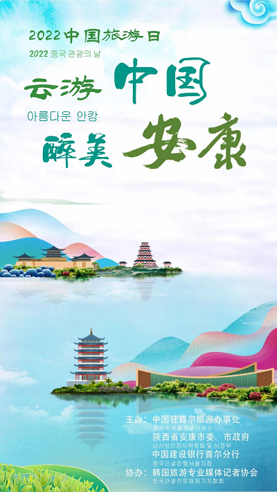 值此2022中國旅游日來臨之際,中國駐首爾旅游辦事處攜手陜西省安康市委、市政府,中國建設(shè)銀行首爾分行以及韓國旅游專業(yè)媒體記者協(xié)會等中韓機(jī)構(gòu),通過旅游辦官網(wǎng)和優(yōu)兔、臉書、影格、抖音等社交媒體平臺,在韓國共同推出“云游中國·醉美安康”線上主題活動,助推安康優(yōu)秀的文旅資源和良好的營商環(huán)境走入韓國,引領(lǐng)韓國民眾在線云游安康、了解安康,深切感受安康的自然之美、文化之美、建設(shè)之美。