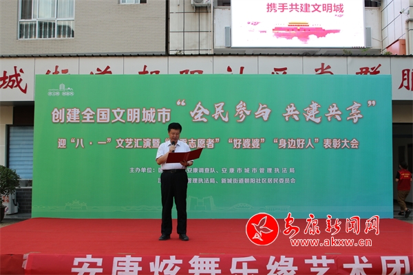 本網(wǎng)訊(通訊員 趙小玉 譚成鈴)為扎實推進(jìn)全國文明城市創(chuàng)建工作,營造“全民參與,共建共享”的濃厚氛圍,進(jìn)一步掀起幫扶社區(qū)的創(chuàng)文工作熱潮,8月1日晚,國家統(tǒng)計局安康調(diào)查隊聯(lián)合市、區(qū)城市管理執(zhí)法局、朝陽社區(qū)居委會共同舉辦了朝陽社區(qū)“創(chuàng)建文明城市‘全民參與,共建共享’”迎“八一”文藝匯演暨“優(yōu)秀志愿者”“好婆婆”“身邊好人”表彰活動。市人大常委會黨組成員、副主任趙立根出席活動并講話。
