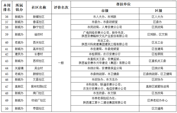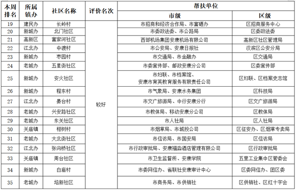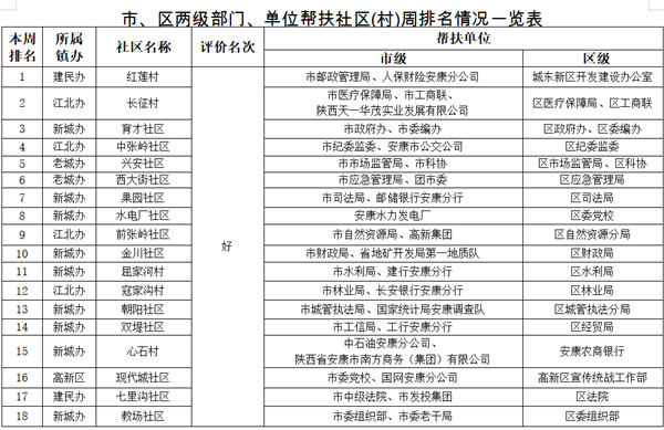 附件:市、區(qū)兩級(jí)部門、單位幫扶社區(qū)(村)周排名情況一覽表