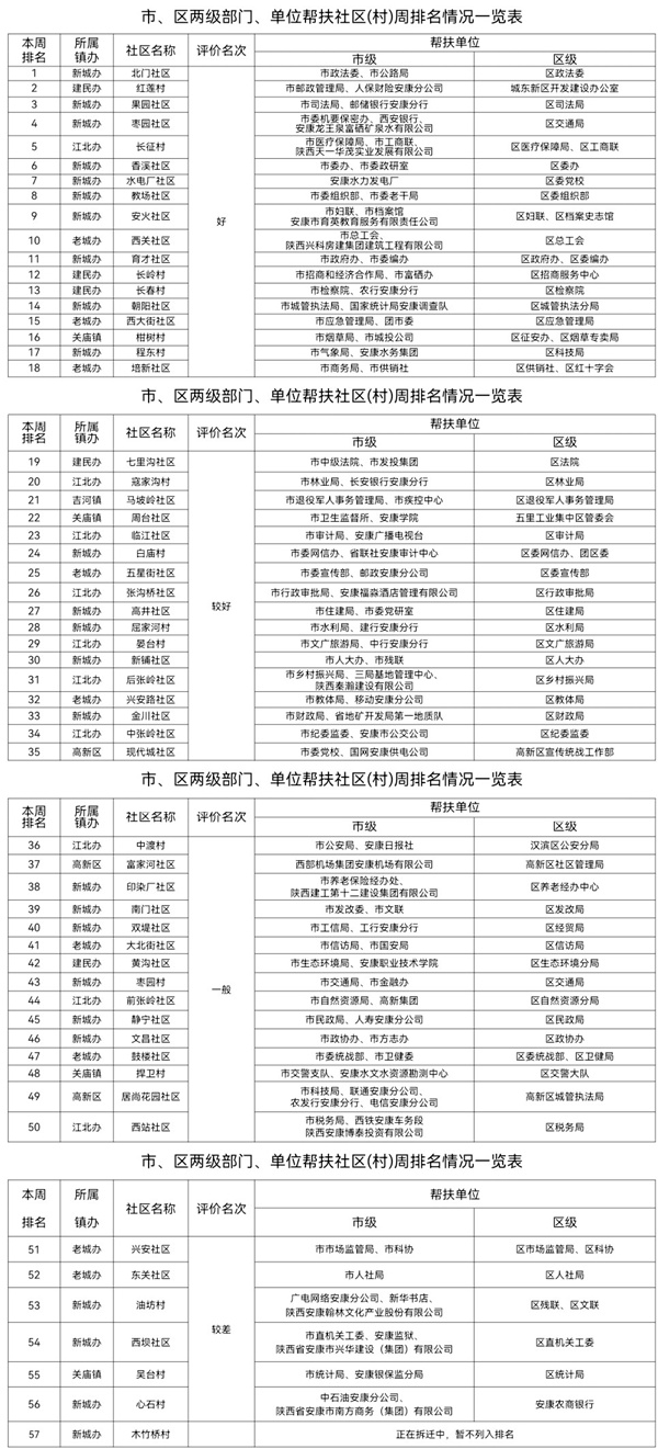 附件:市、區(qū)兩級(jí)部門、單位幫扶社區(qū)(村)周排名情況一覽表