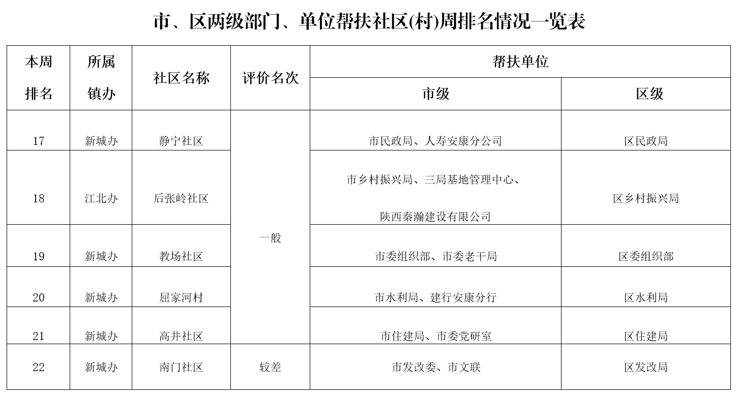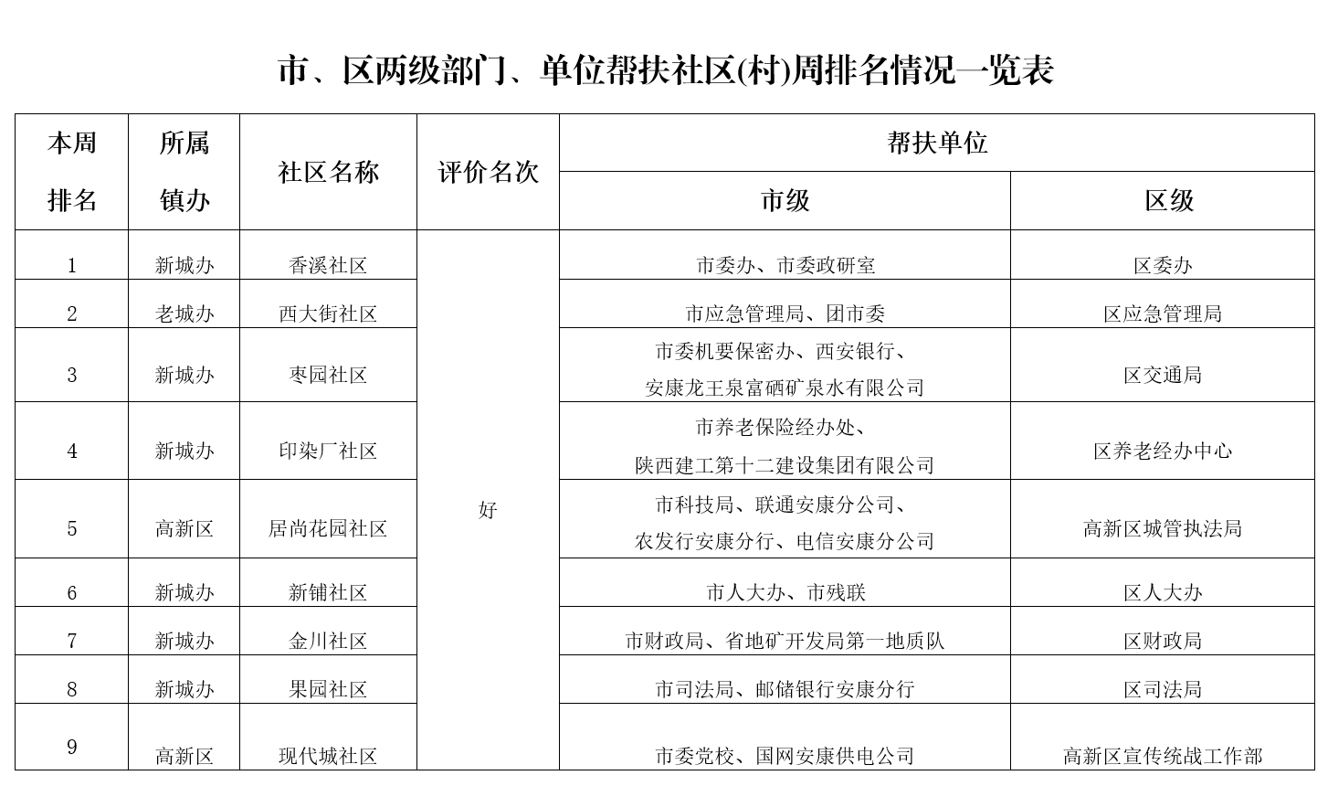 附件:市、區(qū)兩級(jí)部門幫扶社區(qū)(村)周排名情況一覽表