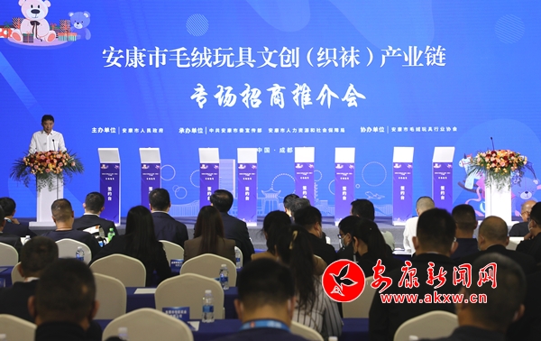 晚秋,蓉城。中國(guó)西部國(guó)際博覽城9號(hào)大廳里座無(wú)虛席,氣氛熱烈。2022年11月1日3時(shí)許,安康市毛絨玩具文創(chuàng)(織襪)產(chǎn)業(yè)專場(chǎng)招商推介會(huì)如期召開(kāi)。安康市常務(wù)副市長(zhǎng)從中國(guó)玩具和嬰童用品協(xié)會(huì)會(huì)長(zhǎng)梁梅手中接過(guò)“建設(shè)毛絨玩具文創(chuàng)產(chǎn)業(yè)集群建設(shè)突出貢獻(xiàn)獎(jiǎng)”的金字牌匾時(shí),大廳里響起經(jīng)久不息的熱烈掌聲,許多人百感交集。