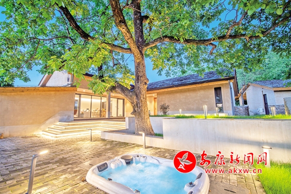 花婆婆民宿有6座院落、1棟云上會(huì)客廳,建筑面積1800多平方米。行走在民宿度假區(qū),花、草、樹(shù)、石、步道、房屋錯(cuò)落相應(yīng),虛實(shí)相生。一棵冠如巨傘的核桃樹(shù)兀立于小院中,樹(shù)齡至少百年以上,主干黝黑皴裂,枝丫遒勁繁密。“原來(lái)的院子和樹(shù)也是這樣共生的。”往年茶季,老房主周顯勤一家經(jīng)常在核桃樹(shù)下手工揉茶、攤開(kāi)簸箕曬茶。他說(shuō),雖然現(xiàn)在已經(jīng)有了一家標(biāo)準(zhǔn)化茶廠,但是依然懷念在老屋制茶的日子。這些帶著時(shí)光印痕的物景和故事,最能引起人們對(duì)鄉(xiāng)村記憶的共鳴,實(shí)現(xiàn)對(duì)心靈的療愈;ㄆ牌琶袼藿ㄔ熘凶駨牧诉@一規(guī)律,始終堅(jiān)持盡最大可能地保留原始風(fēng)貌,哪怕是一塊凸起的石頭和貼在巖壁上的青苔,也小心地呵護(hù)著。
