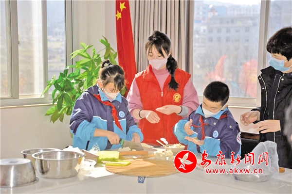 壬寅除夕,家家戶戶都沉浸在團(tuán)圓與喜慶中,安康城區(qū)文昌南路興華名城的一間活動(dòng)室里,也是一片熱鬧。和面、搟皮、包餡兒……一雙雙小手忙碌著,一張張笑臉綻放著。這些小手的主人屬于安康市第一小學(xué)假日中隊(duì),在新年的鐘聲即將敲響之時(shí),隊(duì)員們帶上暖暖的水餃、蘊(yùn)含吉祥與祝福的蘋(píng)果、柿餅、橙子等水果出發(fā)了。