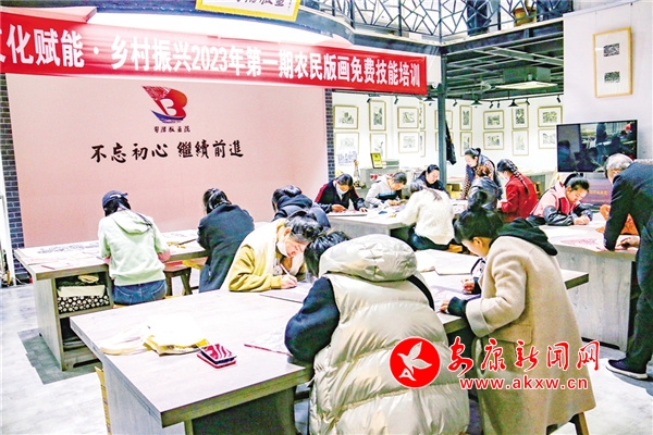 “對于農(nóng)民來說,零成本、零壓力。”作為版畫院負責(zé)人的蔚世生道出了培訓(xùn)的目的。