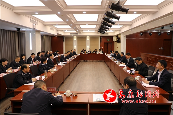 王彪一行先后到12309檢察服務(wù)中心、案管大廳、檢察公開聽證室、指揮中心、新媒體工作室進(jìn)行實(shí)地調(diào)研。王彪強(qiáng)調(diào),人民檢察院是國家的法律監(jiān)督機(jī)關(guān),是國家監(jiān)督體系的重要組成部分,在推進(jìn)全面依法治國、建設(shè)社會(huì)主義法治國家中發(fā)揮著重要作用。要堅(jiān)持黨的領(lǐng)導(dǎo),把深入貫徹黨的二十大精神作為首要政治任務(wù),貫通落實(shí)習(xí)近平法治思想,扎實(shí)抓好主題教育,不斷錘煉忠誠干凈擔(dān)當(dāng)?shù)恼纹犯。要服?wù)中心大局,切實(shí)維護(hù)國家政治安全、社會(huì)安定、人民安寧、網(wǎng)絡(luò)安靖,主動(dòng)融入共建共治共享社會(huì)治理格局,自覺護(hù)航幸福安康建設(shè),為經(jīng)濟(jì)社會(huì)高質(zhì)量發(fā)展提供堅(jiān)強(qiáng)的司法保障。要強(qiáng)化法律監(jiān)督,依法履行好刑事、民事、行政和公益訴訟等檢察監(jiān)督職能,維護(hù)社會(huì)公平正義,維護(hù)國家法制統(tǒng)一、尊嚴(yán)和權(quán)威。要鍛造過硬隊(duì)伍,緊扣“三個(gè)年”活動(dòng)安排,全面從嚴(yán)管黨治檢,持續(xù)推進(jìn)政治建設(shè)和業(yè)務(wù)建設(shè)深度融合,提升檢察人員政治素質(zhì)和專業(yè)素養(yǎng),高標(biāo)準(zhǔn)淬煉忠誠干凈擔(dān)當(dāng)?shù)男聲r(shí)代檢察鐵軍。