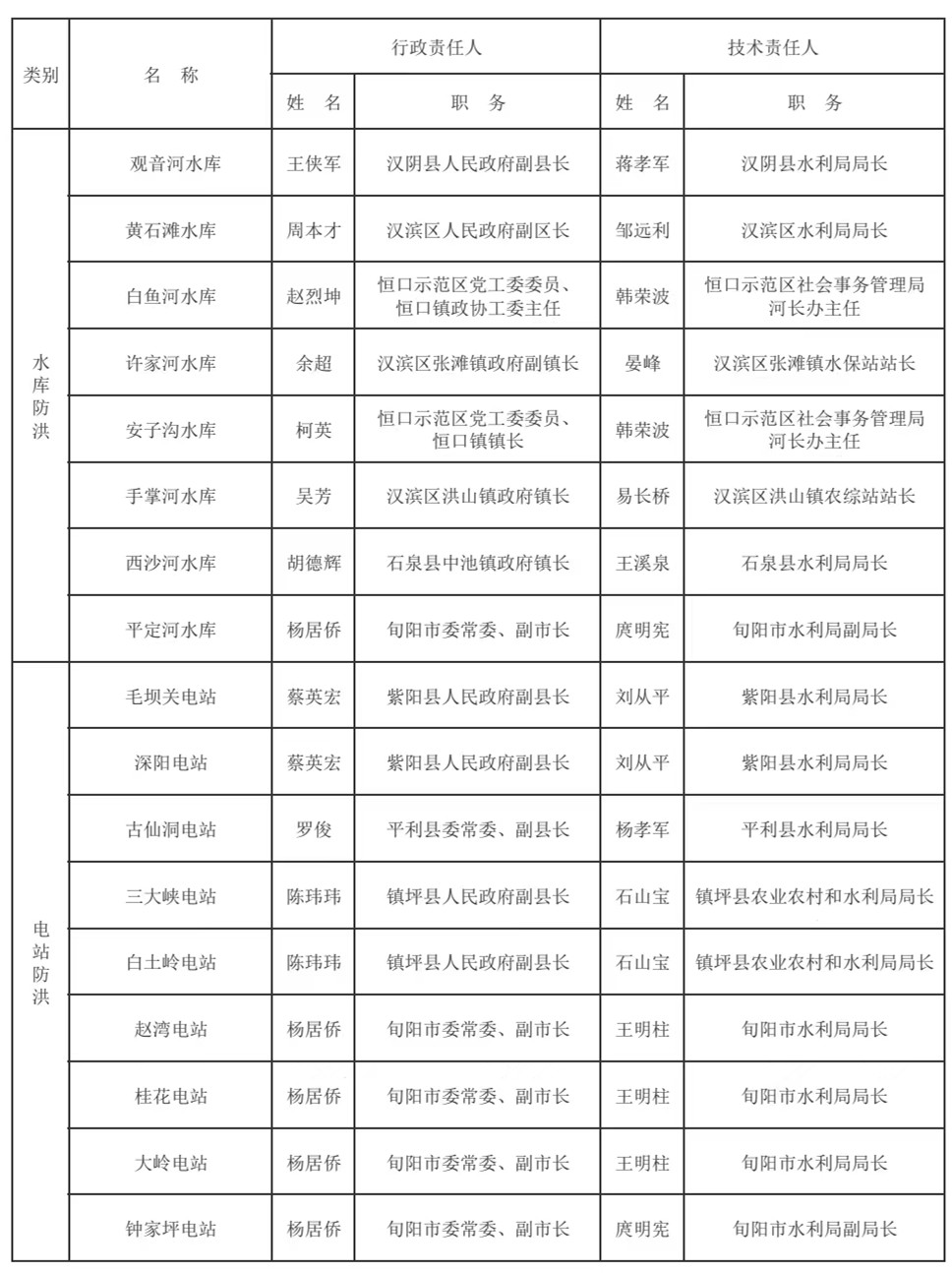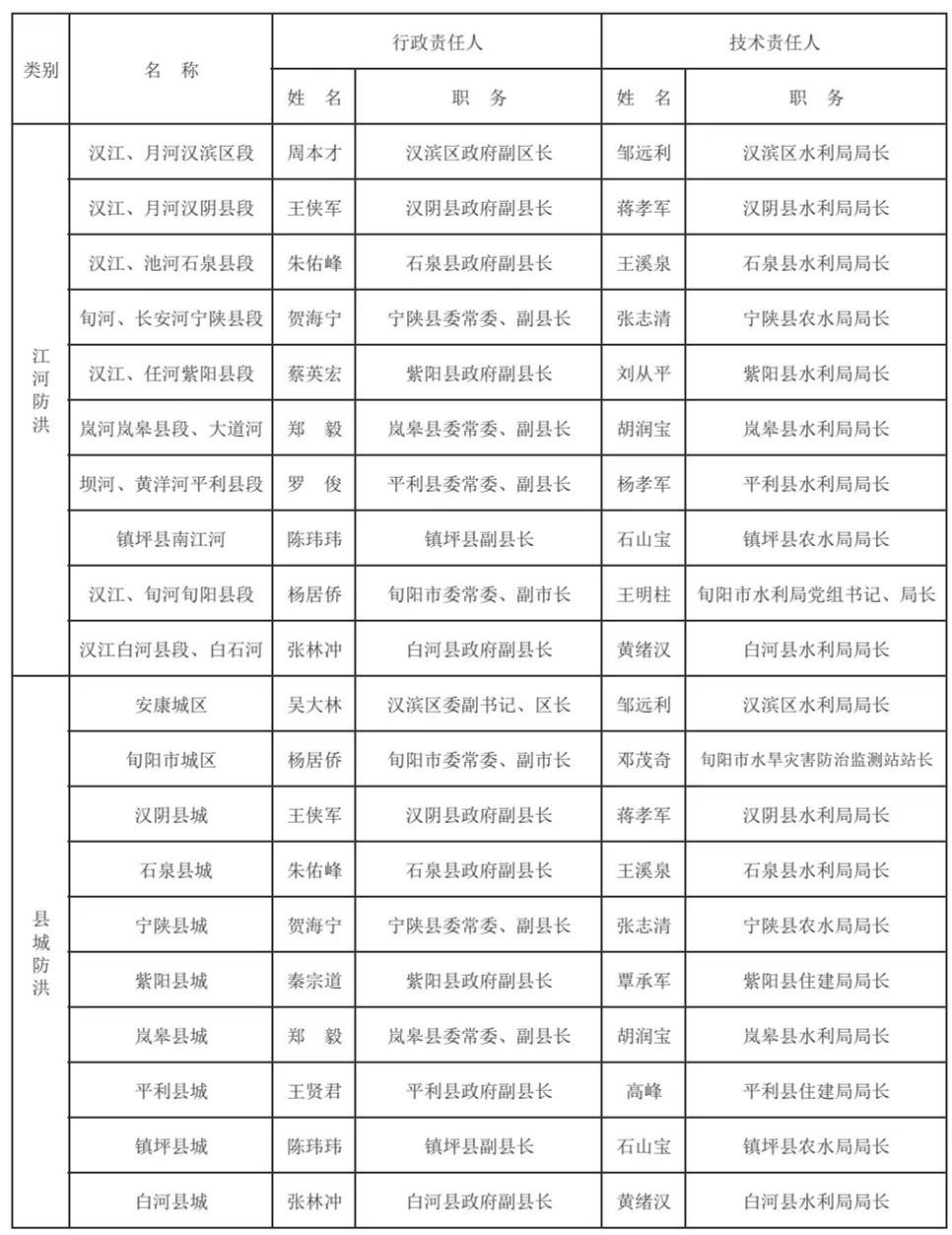 安康市2023年主要江河、縣城、水庫、電站防汛責(zé)任人名單GjL安康新聞網(wǎng)
