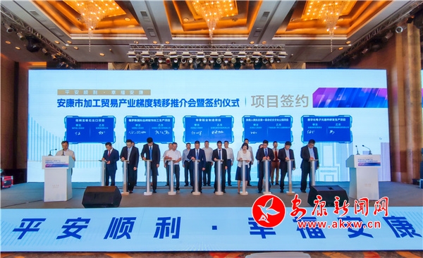 借助第13屆中國加工貿易產品博覽會東風,我市于5月10日下午在東莞市舉行了安康市承接加工貿易產業(yè)梯度轉移推介會暨簽約儀式。陜西省商務廳副廳長張文政,市委常委、常務副市長高晶華分別致辭,商務部外貿司二級巡視員蘇斌,陜西省商務廳二級巡視員昌利以及廣東省商務廳、東莞市商務局相關領導出席會議。廣東?悼毓杉瘓F有限公司、東莞市玖月汽車貿易有限公司、廣東陜商實業(yè)有限公司等150余家企業(yè)代表參會。
