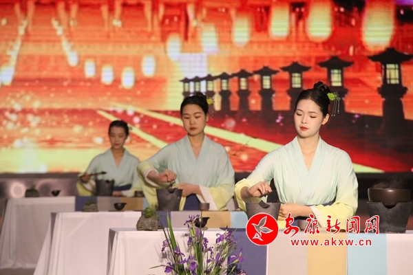 “一對紅鴉雀(喜鵲)飛起飛落叫喳喳,叫聲姐姐快燒茶,后院客來啦!……”活動以陜南民歌舞《姐姐快燒茶》開場,體現(xiàn)了家里來客要燒水泡茶的陜南民間傳統(tǒng)習俗和熱情好客的淳樸民風!赌昴暧袀三月三》《茉莉茶歌》《茶飄香》等豐富多彩的茶專題現(xiàn)場表演,充分詮釋了采茶制茶、沏茶飲茶的多姿形態(tài)和茶鄉(xiāng)人民的淳樸風貌。陜西省非物質文化遺產(chǎn)傳承項目紫陽毛尖茶傳統(tǒng)制作技藝傳承人曾朝和,以及新一代茶人龍珊,與嘉賓們分享了安康制茶匠人對古法技藝的保護與傳承。