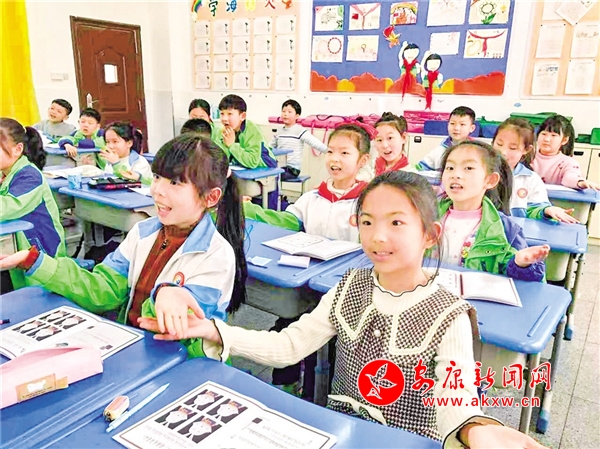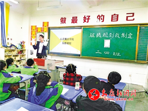 5月10日,漢陰縣鳳臺小學(xué)班主任郭素婷老師拿著兩只小兔子玩偶,在講臺上聲情并茂講著心理故事,臺下的孩子們臉上掛著開心的笑容。這是鳳臺小學(xué)一節(jié)主題為《我的好朋友》的心理健康課程。
