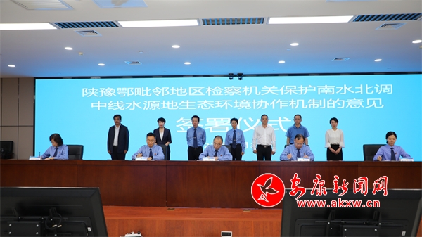 會議期間,南陽、十堰、漢中、商洛、安康五市檢察長會簽了《關(guān)于建立陜豫鄂毗鄰地區(qū)檢察機(jī)關(guān)保護(hù)南水北調(diào)中線水源地生態(tài)環(huán)境協(xié)作機(jī)制的意見》,健全完善了信息共享、線索移送、通報反饋、生態(tài)修復(fù)、調(diào)研巡察等協(xié)作機(jī)制。