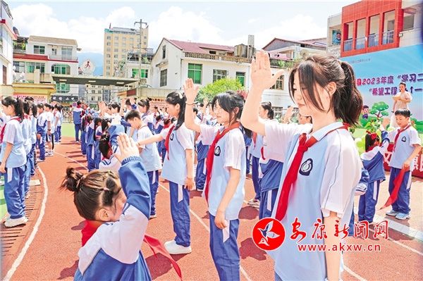 5月31日,白河縣城關(guān)鎮(zhèn)中心小學(xué)舉行慶祝“六一”兒童節(jié)活動(dòng),并為新一批少先隊(duì)員舉行了入隊(duì)儀式。 賀茂麗 攝