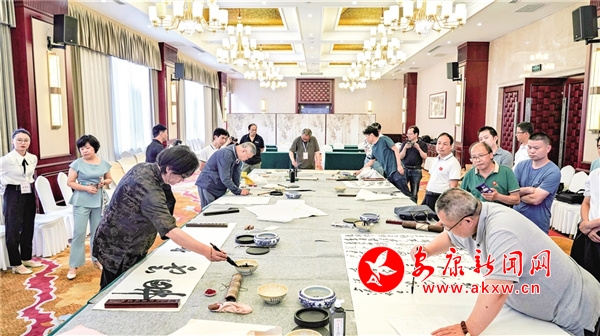 6月11日下午,來自上海的書法藝術(shù)家們與安康、漢陰本地書法家開展了書法交流筆會,書法家們懷著對沈尹默先生的崇敬之情,一同揮毫潑墨、暢意抒懷,一幅幅主題鮮明、筆精墨妙的書法作品躍然紙上。創(chuàng)作之余,大家相互點評書法作品,并對書法創(chuàng)作藝術(shù)進行交流,進一步增強了漢陰與上海的文化交流與合作。