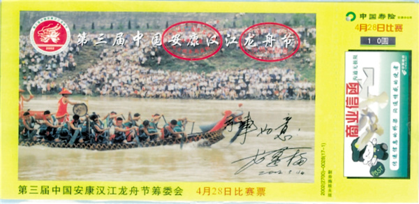 中國安康漢江龍舟節(jié),已成功舉辦二十二屆,除第一屆未發(fā)行門票以外,這組從2001年第二屆至2022年第二十二屆龍舟節(jié)的門票全輯(除第十四屆外),勾勒出了一條江的命運(yùn)軌跡,彰顯了安康在中國社會經(jīng)濟(jì)整體布局中的責(zé)任和擔(dān)當(dāng)。
