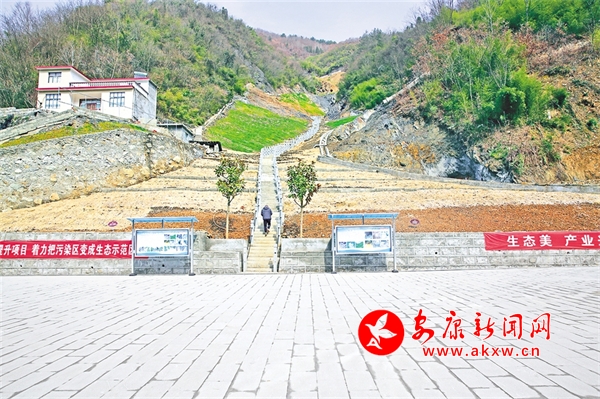 在卡子鎮(zhèn)和尚廟礦點,礦硐封堵標(biāo)識牌上顯示:施工日期2022年9月18日,竣工日期2022年10月15日。8月16日,竣工10個月之后,記者看到,在礦硐封堵治理后,礦山山體再次被綠色包裹,礦硐兩側(cè)的山坡開滿了五顏六色的花朵。相隔幾十米,一個基礎(chǔ)設(shè)施完善的文化廣場在清澈的小溪旁格外顯眼。