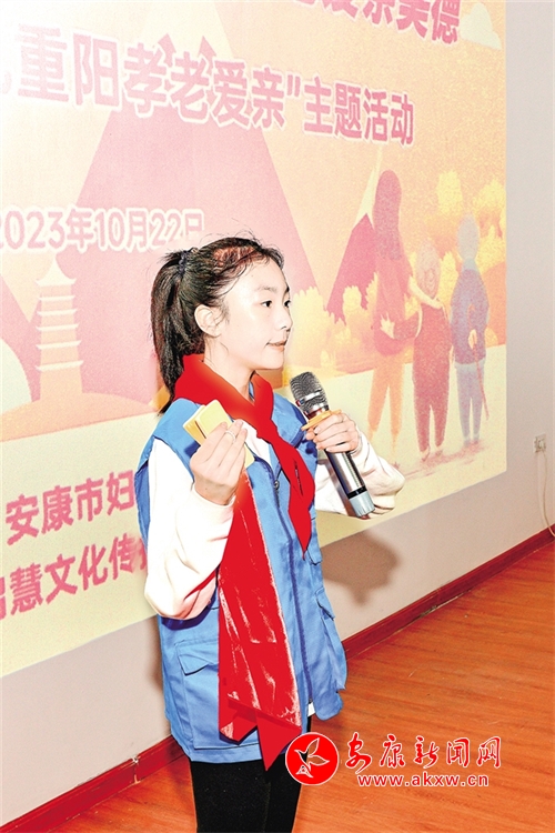 為弘揚(yáng)中華民族傳統(tǒng)美德,營(yíng)造尊老、愛老濃厚氛圍,在10月22日重陽節(jié)即將來臨之際,安康日?qǐng)?bào)社開展“九九重陽 孝老愛親”主題活動(dòng)。本次活動(dòng)由安康市關(guān)心下一代工作委員會(huì)、安康市婦女聯(lián)合會(huì)、安康日?qǐng)?bào)社主辦,安康少年新聞學(xué)院、安康金州啟慧文化傳播有限公司承辦;顒(dòng)中的手勢(shì)舞表演《中華孝道》、互動(dòng)游戲《拍拍操》、分享重陽糕、茶藝表演及為老人奉茶等環(huán)節(jié),讓現(xiàn)場(chǎng)每個(gè)人感受到了濃濃的節(jié)日氛圍。(記者 潘潤(rùn)生 攝影報(bào)道)