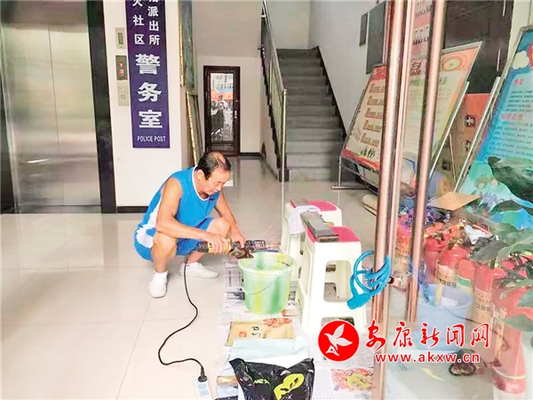 半年后,“老劉工作室”在社區(qū)內(nèi)已小有名氣。此時,御公館小區(qū)的新住戶馮福建認(rèn)出了這位老熟人。“1991年,我還在老家富家河種田,劉成厚復(fù)員后被分到當(dāng)時的八一水庫管理處養(yǎng)魚,他管理的魚塘和我家稻田一渠之隔。