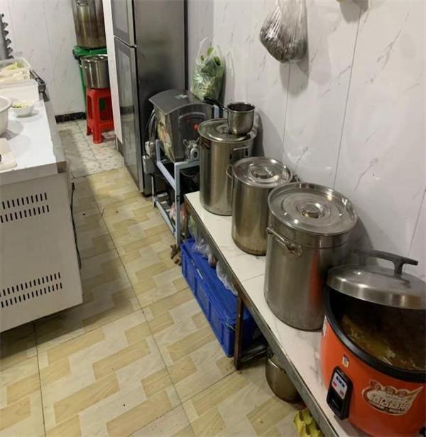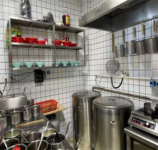 后廚干凈衛(wèi)生,店內(nèi)整潔,物品擺放有序。