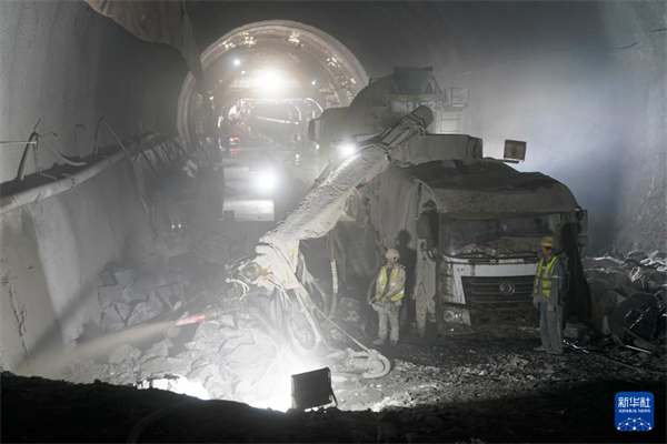 △ 1月26日,在長(zhǎng)達(dá)13.3公里的西康高鐵秦嶺九天山隧道內(nèi),中鐵七局集團(tuán)的工人在開(kāi)挖面作業(yè)。新華社記者 邵瑞 攝