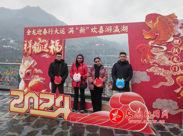 在游覽瀛湖風(fēng)景區(qū)時(shí),留學(xué)生們陶醉于湖光山景。4名留學(xué)生在景區(qū)打卡地盡情打卡拍照,定格最美的瞬間,并通過視頻與家人連線,讓家人欣賞安康秀美的山水、美麗的鄉(xiāng)村、鄉(xiāng)村振興下村民的美好生活。游船穿梭在湖中,湖景和浮橋倒映在水中,王吉感嘆:“這么大的湖,這么清的水,真是漂亮極了。”