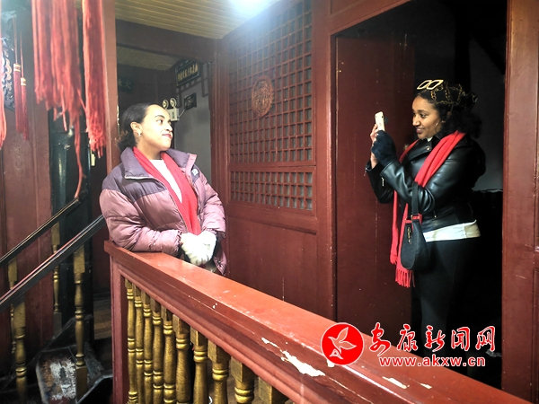 “千門萬戶曈曈日,總把新桃換舊符。”中國(guó)春節(jié),是從貼春聯(lián)開始的,4名留學(xué)生來到老城街道辦土地樓一處老房子,在主人的熱情接待下,他們參觀了這座始建于清末民初的全磚木結(jié)構(gòu)古建筑。留學(xué)生們被老房子中的一草一木所吸引,感受著歲月的痕跡和安康民居的獨(dú)特韻味。“真的很難想象,這棟建筑有超過150年的歷史,這是怎么建造的呢?”來自埃塞俄比亞的留學(xué)生梅昕對(duì)這樣的古建筑充滿了好奇。在社區(qū)工作人員的幫助下,留學(xué)生們?yōu)槔险合屡f桃符,貼上新春聯(lián),共同體驗(yàn)了春節(jié)的“辭舊迎新”之意。