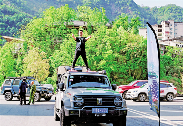 自駕車隊(duì)途經(jīng)“朱鹮小村”石泉草池灣