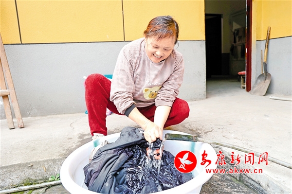 掃完院壩,龔光憲徑自走進廚房,不一會兒,就端出了老人喜歡吃的臊子面。吃罷飯后,龔光憲麻利地把公公換下來的衣服放入一個大盆中,拉來水管蹲在地上搓洗起來。